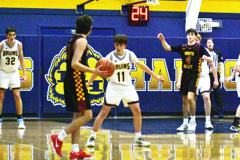 The Bruin boys varsity basketball team hosted the 2-7 North Valley Knights Tuesday evening, and both teams came out swinging.