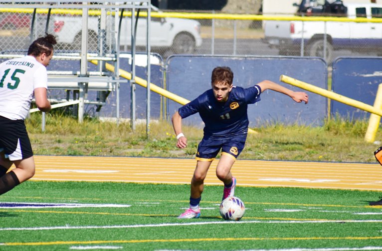 Senior, Sebastian Silveira, #9 would find himself with a loose ball in front of the Rogue River goal, putting the ball past the Chieftain keeper to extend the Bruin lead to 2-0.