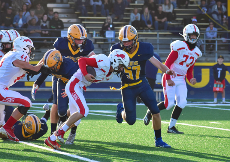 After watching the Bruin offense jump out early, the Bruin defense came out with high energy, shutting down the Etna offense by getting in the Lion backfield and covering the passing lanes forcing an Etna punt.