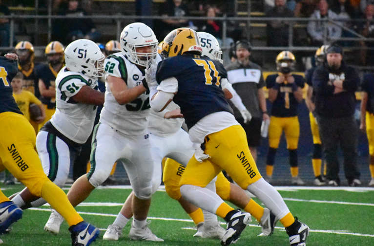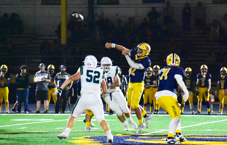 Head coach Shaun Bavaro brought out a high energy team Friday evening that received the kick-off and came out firing to start the first period. After a power sweep to the right side and a long pass down the left sideline the Bruin offense found themselves in scoring position just minutes into the quarter.