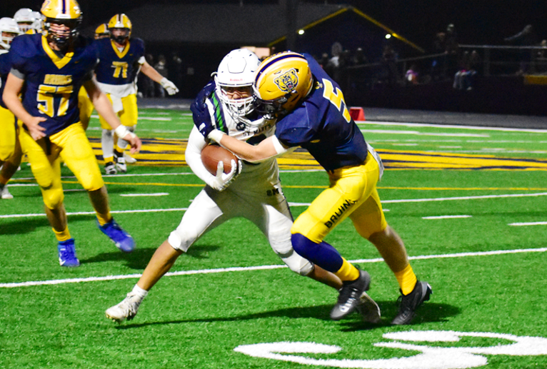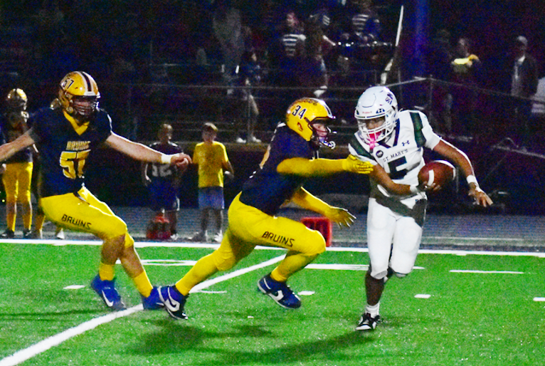 But the Bruin defense would rise up late, shutting down the St. Mary’s offense with a senior defensive back, #5, Preston Gerovec interception, to end a desperate late Crusader drive.
