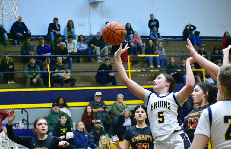 In the second, both teams traded baskets as the score remained close at 22-19 midway through the second period. The Lady Knights rallied for 10 points in the period only to allow the Bruin girls to put up 14 points of their own to take a 28-22 lead into the half-time break.