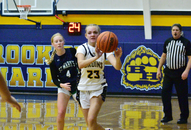The fourth period was much of the same, the Bruin girls outscoring the Lady Crusaders early in the period with St. Mary’s staying close midway through the period pulling within three points, 45-42 with less than a minute left in the game. But the Bruin girls would hold on to take the 45-43 win in a frantic final few seconds.
