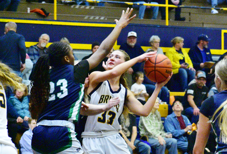 The Bruin girls would get the early advantage taking an early 7-4 lead midway through the first period as the Bruin girls defense settled into a 2-3 defense occasionally pressing the St. Mary’s ball-handler. This slowed the Lady Crusaders offense early, keeping them from finding any rhythm as the Bruin girls extended their lead to 14-8 to close the first period.