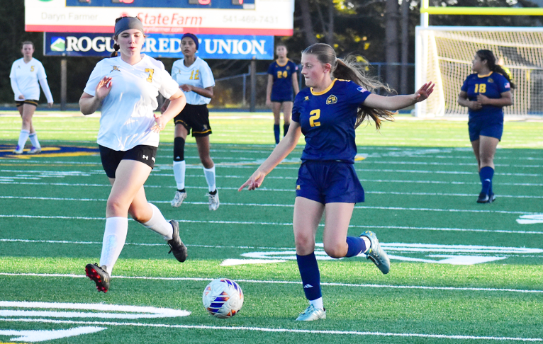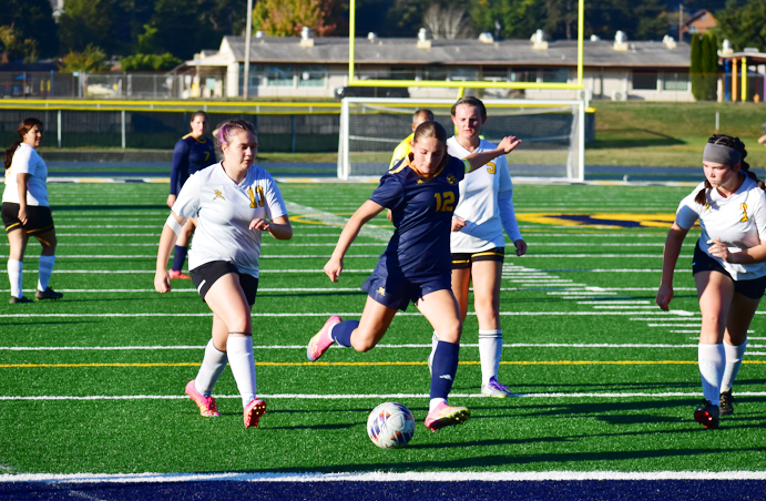 Not to be out done, Kaiya Evans found Sawyer Adams, #12, open in front of the South Umpqua goal, who took the pass and scored from the center of the South Umpqua goal box.