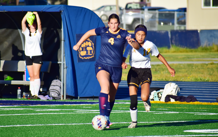 Special teams were working for the Bruin girls also, scoring on a corner kick after freshman Iris Powers-Schmitz used her head to complete a pass to senior #8 Lexi Newman who would finish the Bruin girls scoring in the first half, and taking a 6-0 lead into the half time break.