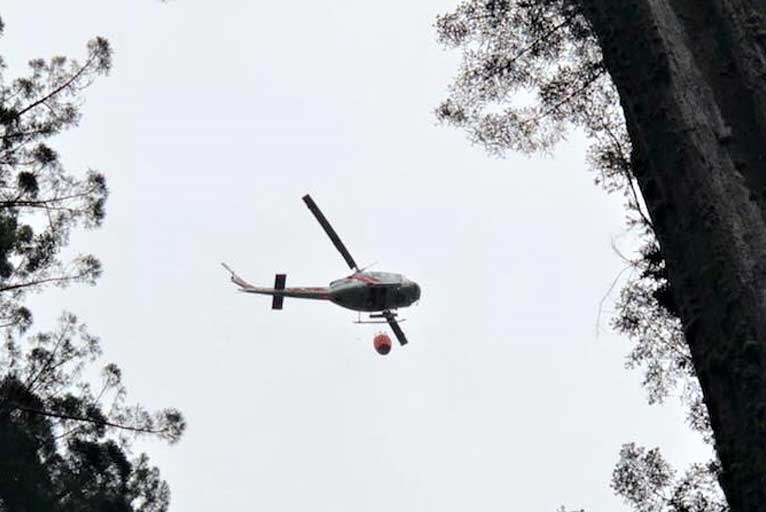 A helicopter from the Department of Forestry made water drops to cool the tree before it was removed to ensure that fire did not spread into the surrounding wilderness area.