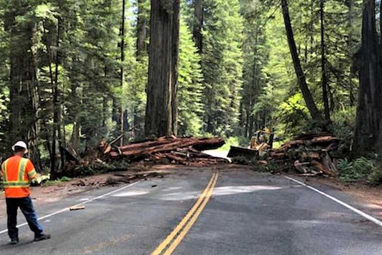 The tree was fell into the closed Hwy. 199 roadway and removed within a 6 hour period.