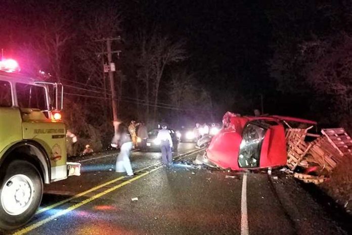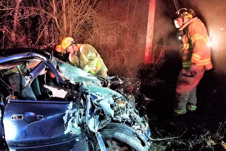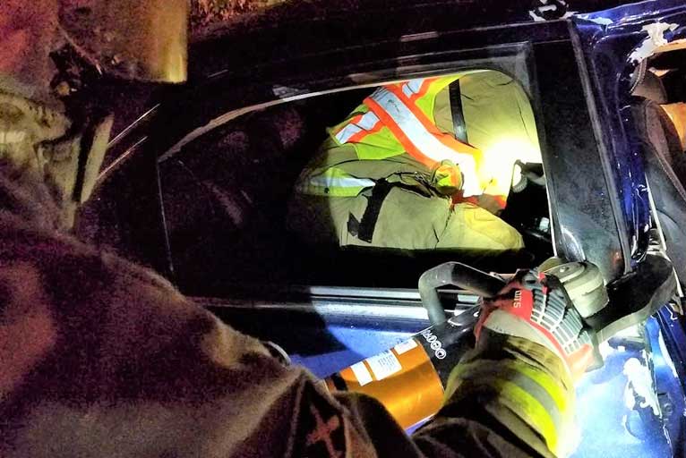 Firefighters using hydraulic extrication tools, commonly referred to as the ‘Jaws of Life’, removed the entire roof of the sedan to gain access to the driver. He was extricated in just under 30 minutes and then transported to Three Rivers Hospital with serious injuries. The driver of the pickup was also transported with nonlife-threatening injuries.
