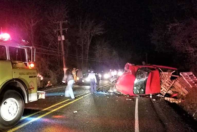On Friday, January 12th at approximately 11:00 pm, a head-on crash was reported to Josephine County 911 in the 8000 block of Williams Hwy, just east of Murphy. Rural Metro Fire & AMR-Josephine County were dispatched and responded to find a full-size pickup on its side in the road and a 4-door sedan in the ditch.