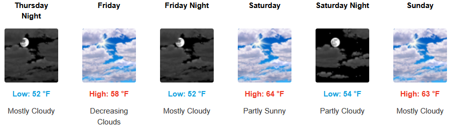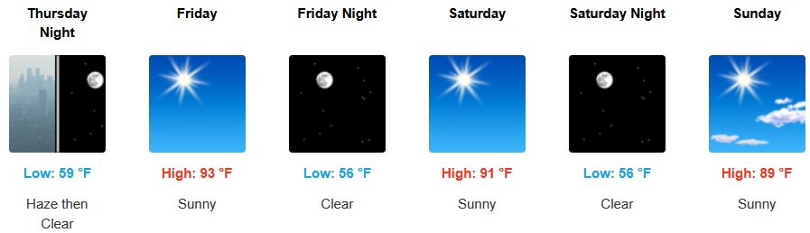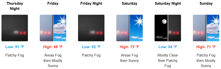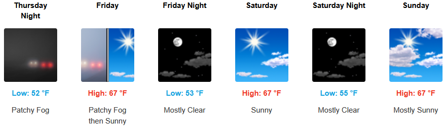 Coast areas will continue to possibly see a morning marine layer along the immediate coast and localized areas of morning fog are possible under sunny afternoon skies to finish the work week. Temperatures are expected remain warm into the weekend with temperatures reaching the low 70’s in some areas with morning lows in the mid 50’s.