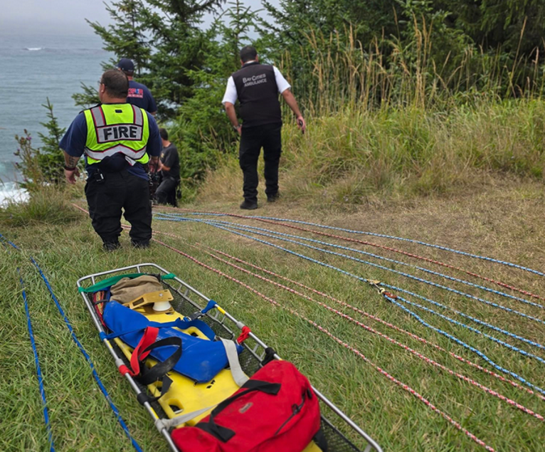 On Tuesday, August 26th, multiple agencies, including Charleston Fire and Rescue, the Coos Bay Fire Department, the North Bend Fire Department and the U.S. Coast Guard Station North Bend responded to reports of a an injured hiker who had fallen at the cliffs at North Cove.