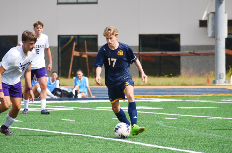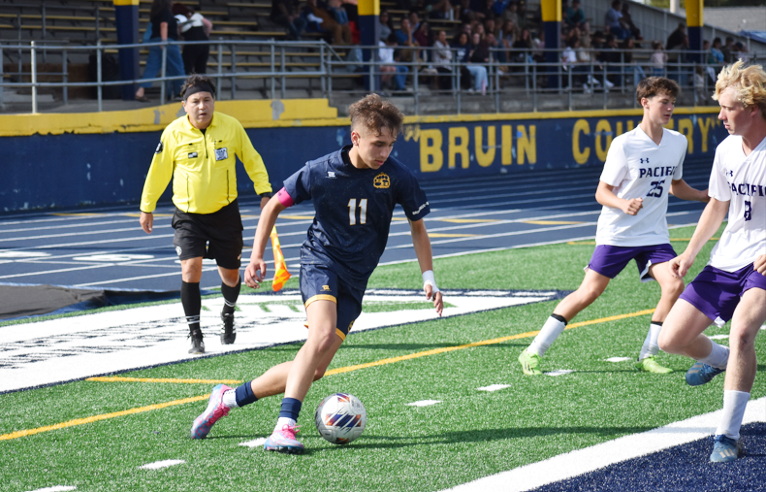 The Bruins offense worked to put together a series of passes attempting to break the Pirates offside trap, ultimately creating a loose ball situation in front of the Pacific goal that would find the foot of junior Jayce Petersen-Salcido, to tie the game at 1-1 22:00 minutes into the first half.
