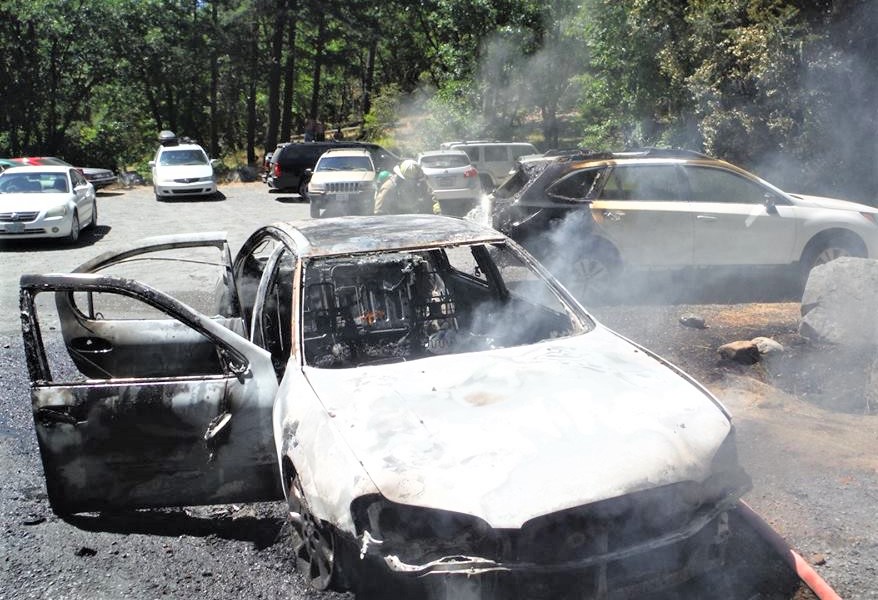 Earlier in the week, the Illinois Valley Fire Department was fighting a grass fire off Waldo Road and handling a smoke investigation off Rockydale when just after 2:30 pm, IVFD was dispatched to a car fire at Store Gulch Campground.