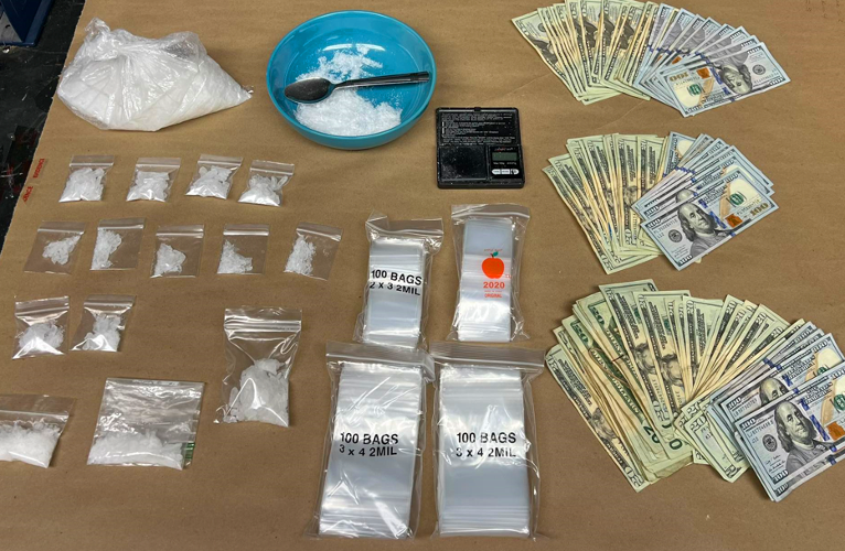 During the execution of the search warrant, deputies and K9 Zuko located over one pound of suspected methamphetamine, cash, scales and packaging material.
