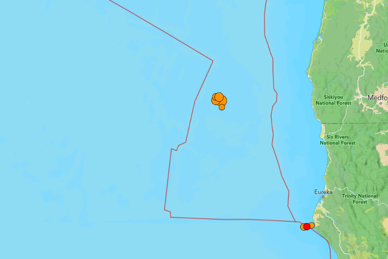 Series of Eight Quakes Strike Off the Oregon and California Coasts Monday