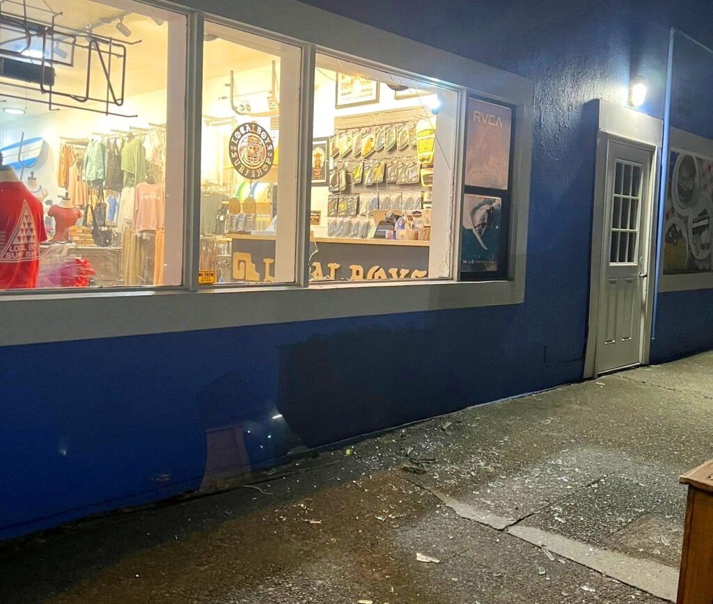 Very early Wednesday morning, July 30th, as low-lying areas of Del Norte County and Crescent City were evacuating under Tsunami “Warning” status issued by the National Weather Service, Crescent City Police Officers were responded to reports of a burglary at Local Boys Surf Shop located on 2nd Street in Crescent City at around 2:25am.