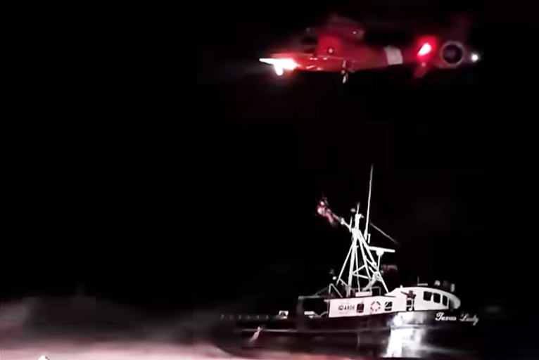 The U.S. Coast Guard aircrew, dealing with a vessel pitching wildly in the surf, then maneuvered into position and extracted the two remaining crew members to safety.