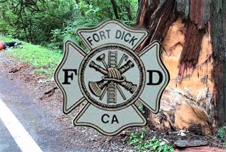 On Friday afternoon, May 1st, just after 1:00 pm Fort Dick Fire responded to reports that a vehicle had struck a tree on Hwy. 199 west of the Hiouchi Bridge .