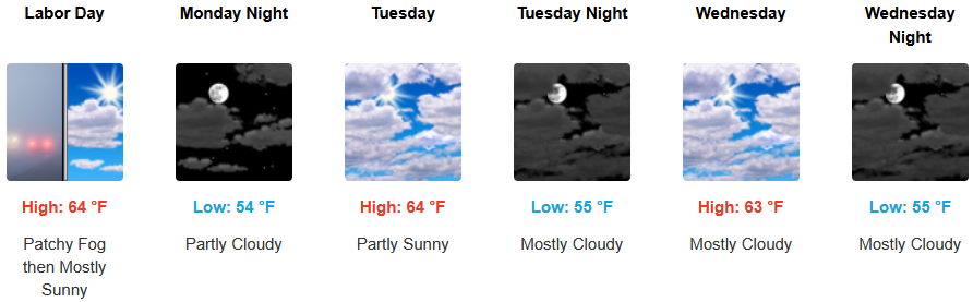 Along coastal, temperatures are forecast to continue to be warm under mostly clear skies into midweek. The usual morning marine layer along the immediate coast and localized areas of morning fog are expected to continue under mostly sunny afternoon skies. Temperatures are expected to reach the lupper 60’s to low 70’s for highs in some areas with morning lows in the low to mid 50’s.
