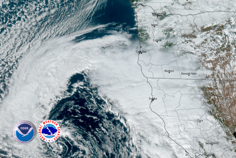 A strong low pressure system continues to circulate off the northern California and southern Oregon coast, pushing bands of precipitation onshore over the weekend, however, the National Weather Service has issued Winter Storm Warnings throughout southern Oregon and northern California ushering in a cold weather system expected to impact the region Monday night and Tuesday bringing snow levels down to 1,300′ by midweek.