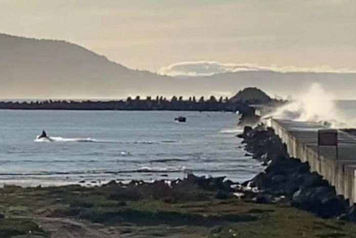 At about 8:30am Christmas morning, a report of a person being swept off the jetty was received by Del Norte Sheriff’s Office dispatcher Tom Betlejewski. Officer Gill & Sergeant Wilson of the Crescent City Police Department, Deputies Stevens and Morgan of the Del Norte Sheriff’s department, along with YTP Officer Kerr (on training) responded to the scene to get a visual on the subject in the water.